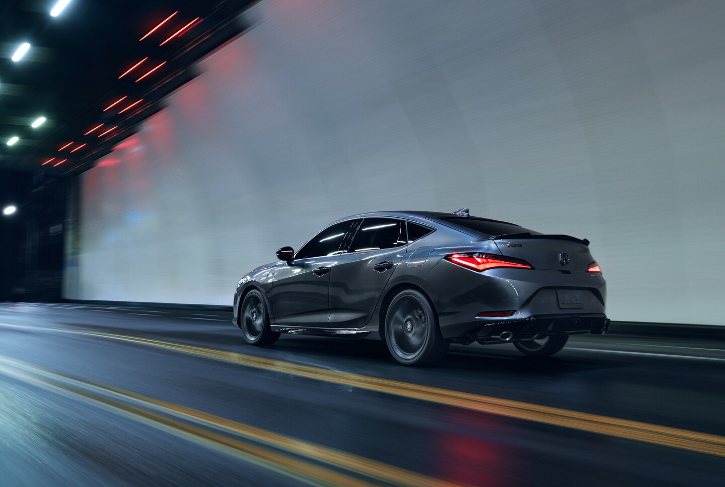 The 2025 Acura Integra takes the beloved nameplate into the future with a sporty and aerodynamic liftback body style. Its athletic stance and flowing lines promise an engaging driving experience. Eyes will linger on the distinctive Acura Diamond Pentagon grille, LED headlights and taillights, and the available 18-inch alloy wheels.