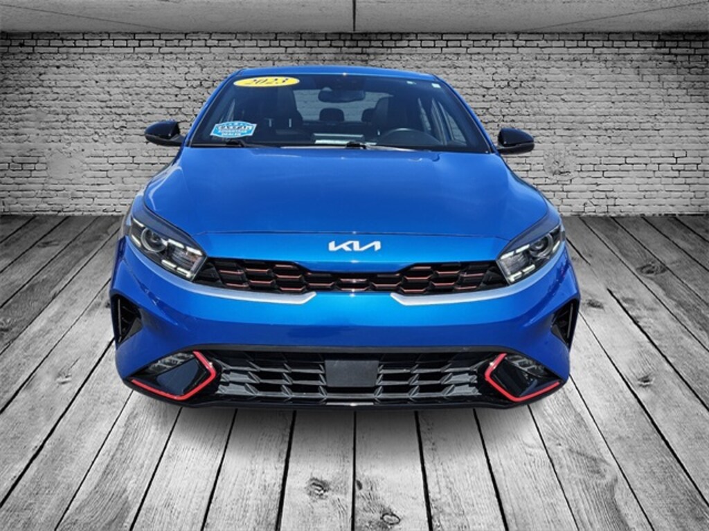2023 Kia Forte GT-Line Sporty Blue Odometer is 2470 miles below market average! 17" x 7.0J Alloy Wheels, 4-Wheel Disc Brakes, 6 Speakers, ABS brakes, Air Conditioning, Alloy wheels, AM/FM radio: SiriusXM, Apple CarPlay & Android Auto, Auto High-beam Headlights, Automatic temperature control, Brake assist, Bumpers: body-color, Cloth & SynTex Seat Trim, Delay-off headlights, Driver door bin, Driver vanity mirror, Dual front impact airbags, Dual front side impact airbags, Electronic Parking Brake (EPB), Electronic Stability Control, Emergency communication system, Exterior Parking Camera Rear, Forward Collision Avoidance-Assist - Cyclist, Front anti-roll bar, Front Bucket Seats, Front Center Armrest, Front dual zone A/C, Front fog lights, Front reading lights, Front wheel independent suspension, Fully automatic headlights, GT-Line Premium Package, Heated door mirrors, Illuminated entry, Leather Shift Knob, Leather steering wheel, LED Interior Lighting, Low tire pressure warning, Navigation System, Navigation-Based Smart Cruise Control (NSCC), Occupant sensing airbag, Outside temperature display, Overhead airbag, Overhead console, Panic alarm, Passenger door bin, Passenger vanity mirror, Power door mirrors, Power steering, Power Sunroof, Power windows, Radio data system, Radio: 10.25" Display Audio, Radio: harman kardon Premium Audio, Rear seat center armrest, Rear window defroster, Remote keyless entry, Security system, Smart Cruise Control w/Stop & Go, Speed control, Split folding rear seat, Spoiler, Sport steering wheel, Steering wheel mounted audio controls, Tachometer, Telescoping steering wheel, Tilt steering wheel, Traction control, Trip computer, Turn signal indicator mirrors, Variably intermittent wipers, Wireless Charging.